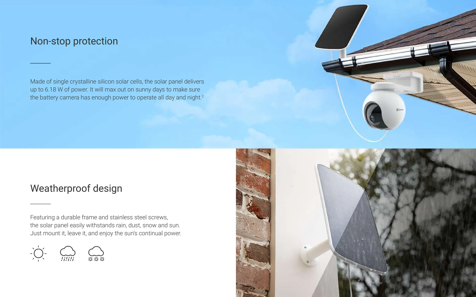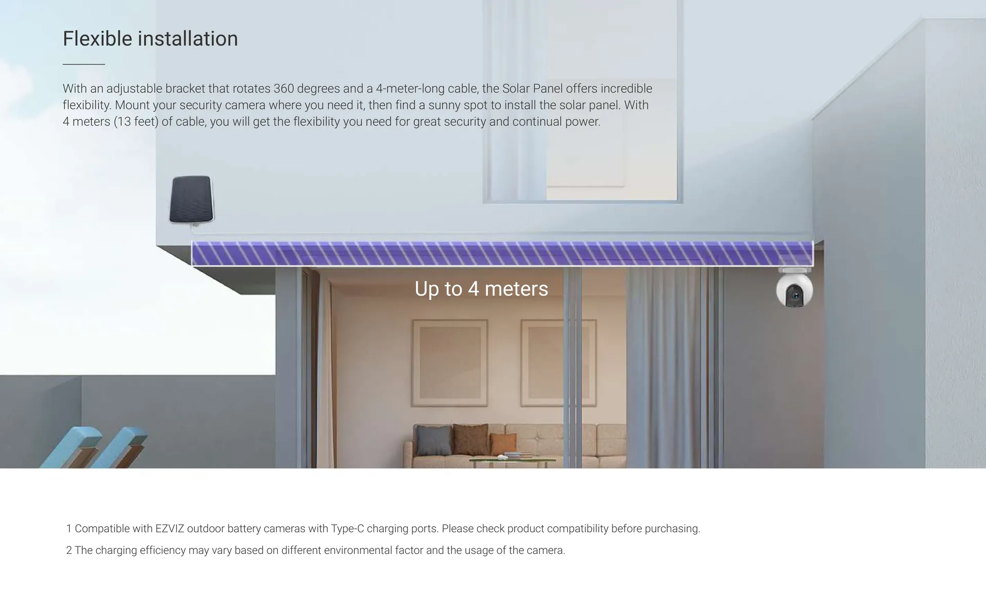 • ⚡ Continuous power for EZVIZ battery cameras